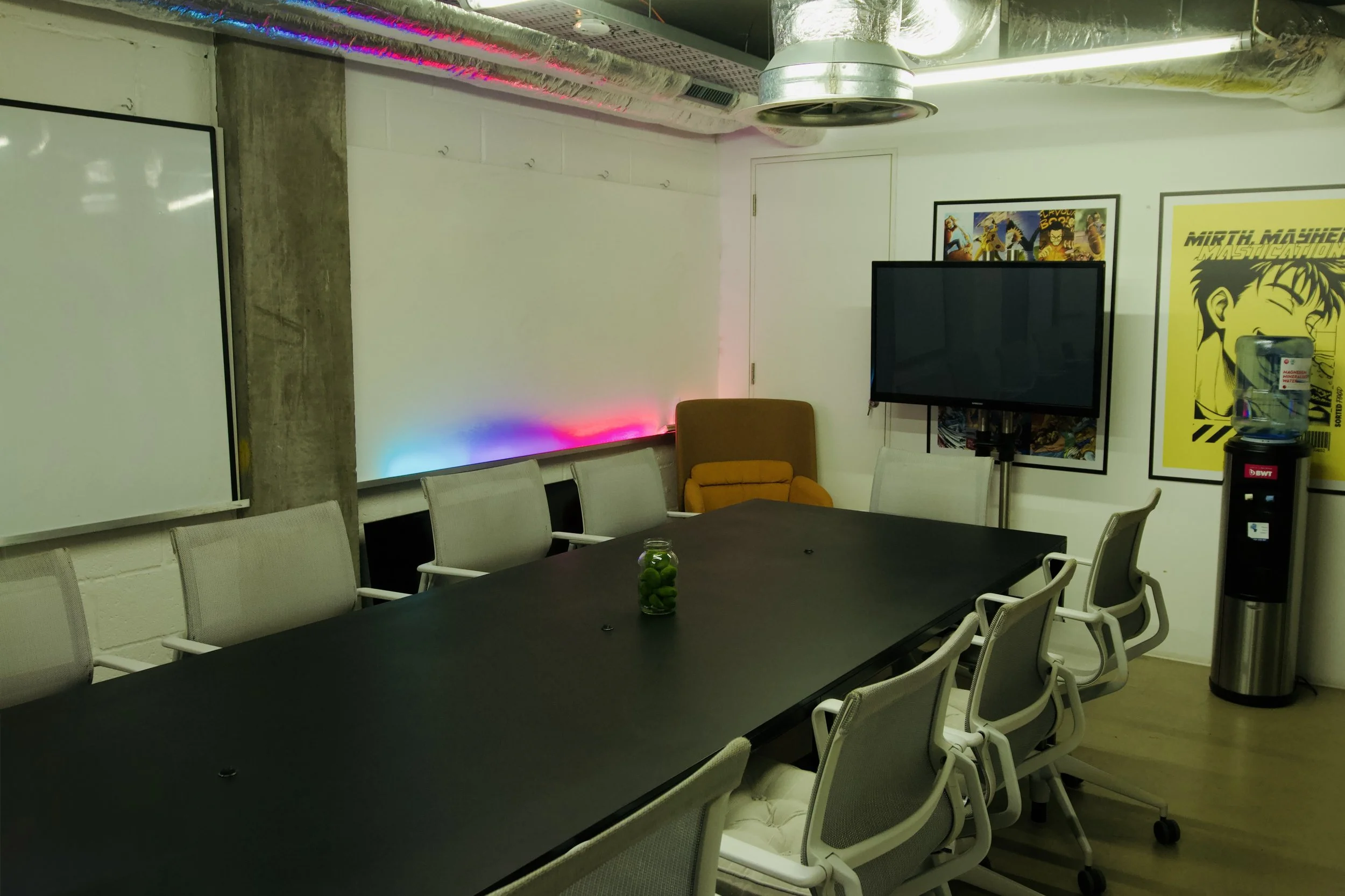 We have two comfortable meeting rooms available to hire, each fully equipped with screens, whiteboard walls, and all the tech you need for presentations and hybrid meetings.
